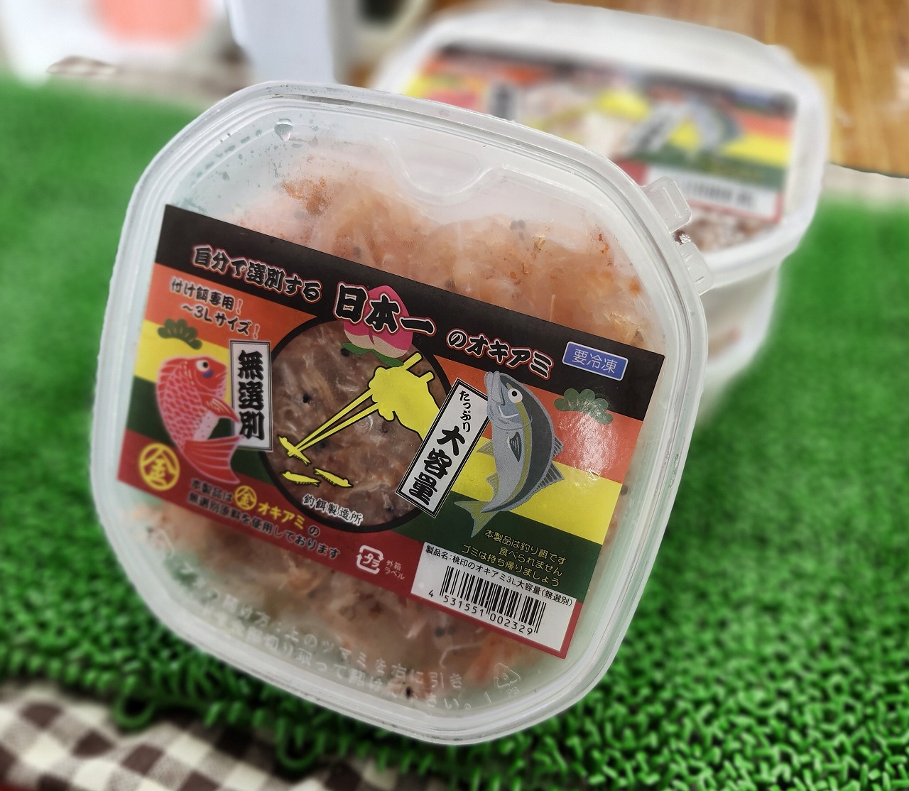 マグロ・カツオ、ワラサや真鯛の付け餌として大好評の「マル金オキアミ」に選ばれる大きなオキアミを「マル金オキアミ」として選別する前の無選別原料をたっぷり使用した大容量バリューパック!!