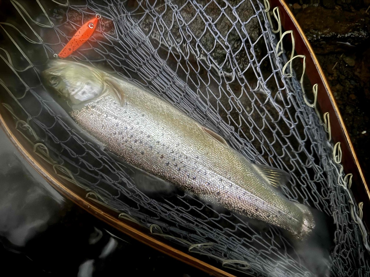 この魚以外にも他の友人が9㎝ミノーのグリグリで