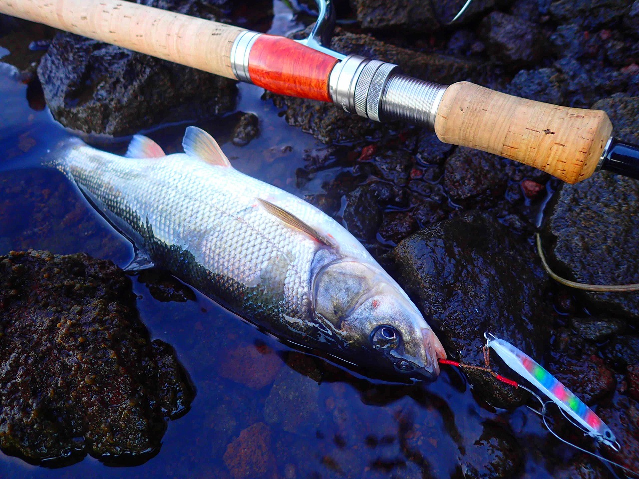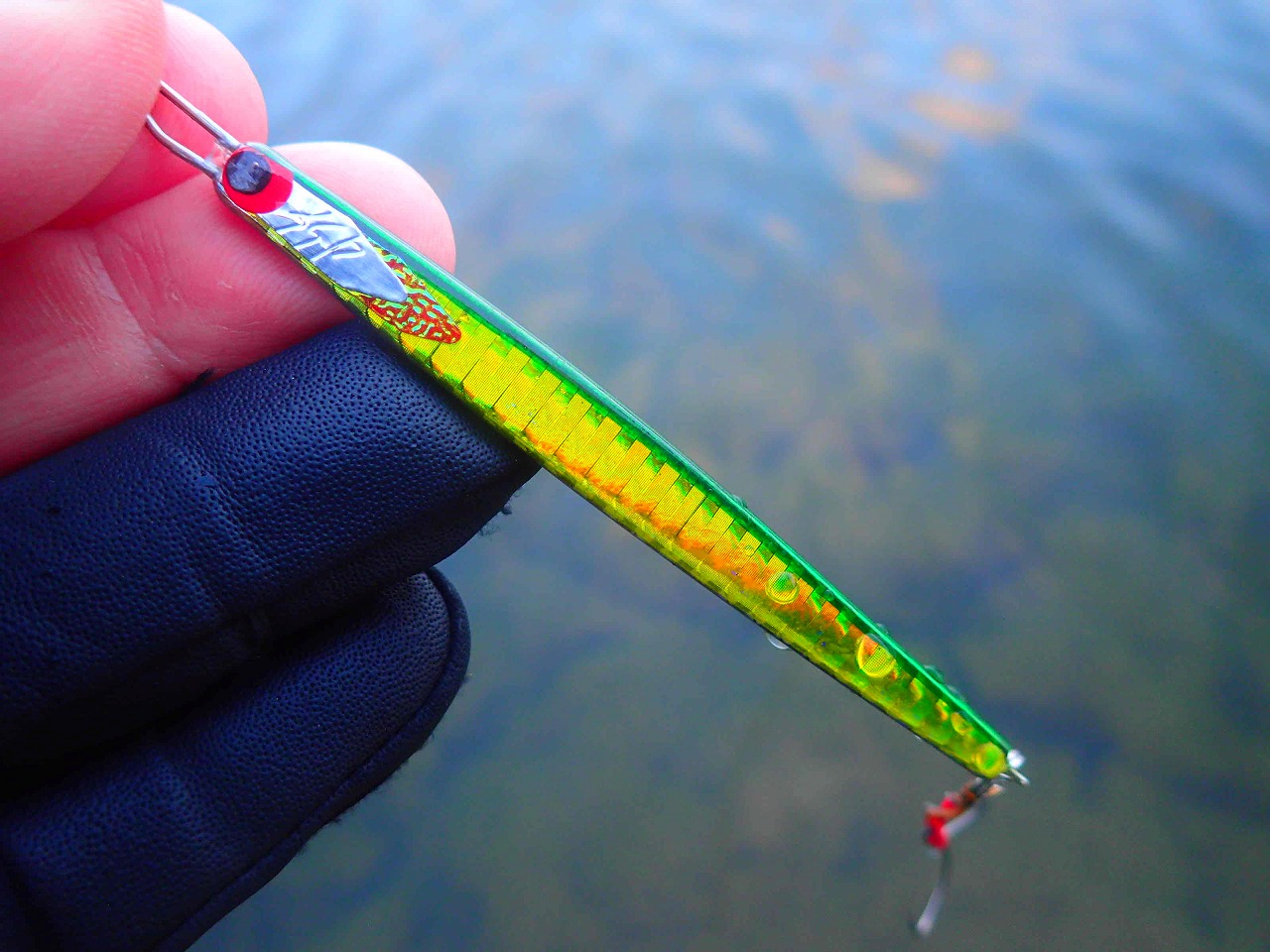 レインボーらしき魚がヒットしますがヒット直後ジャンプ一発でバラシ、、、