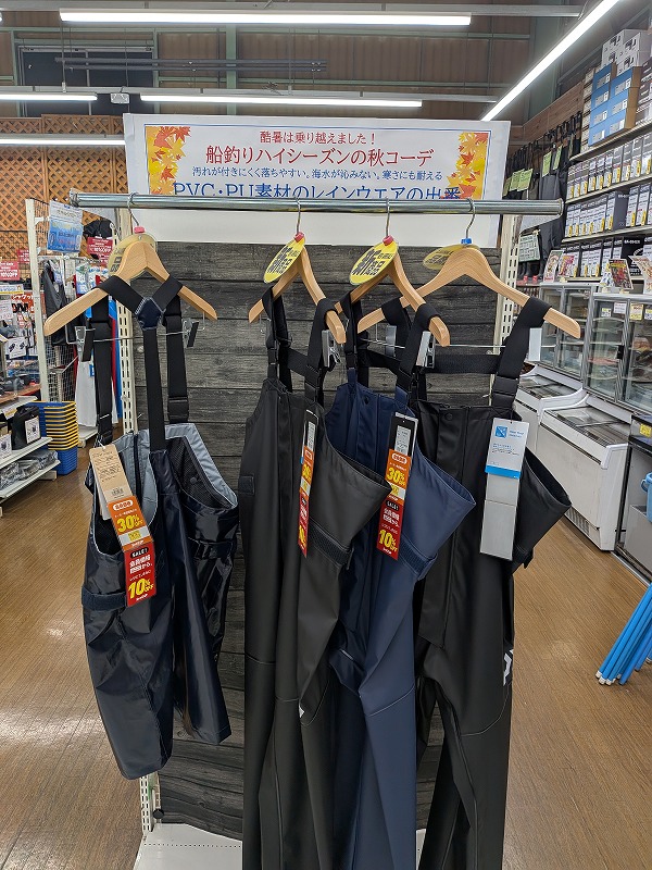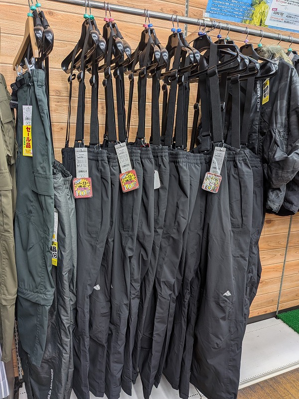 このパンツの他にも、PU・PVC素材のシマノ・ダイワそして双進さんの