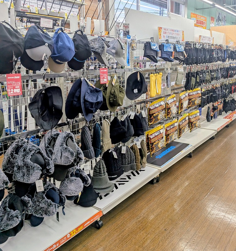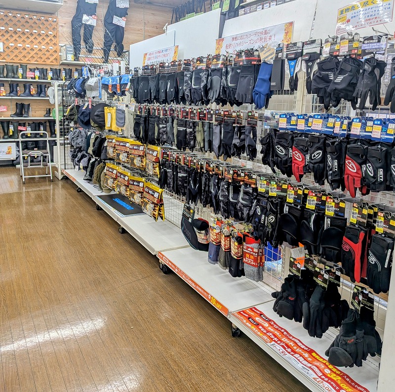 レインスーツにつきましては奥のコーナーにて展開しております。