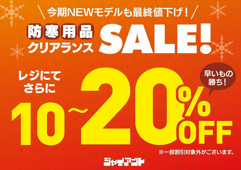 はい。毎年恒例ではありますが、【防寒用品】の最終処分価格でのご提供となっております。