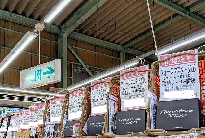 ジャイアント草加店お馴染みになりました【ロッド&リール福袋】。まだまだ豊富に並んでおります。