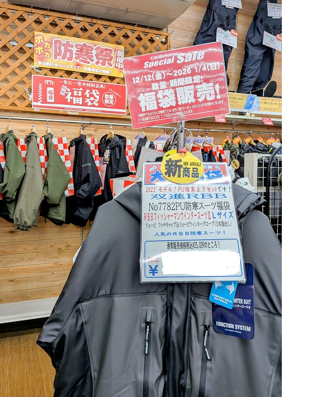 PU素材の防寒スーツ福袋は双進さん・マズメさんご用意出来ました!
