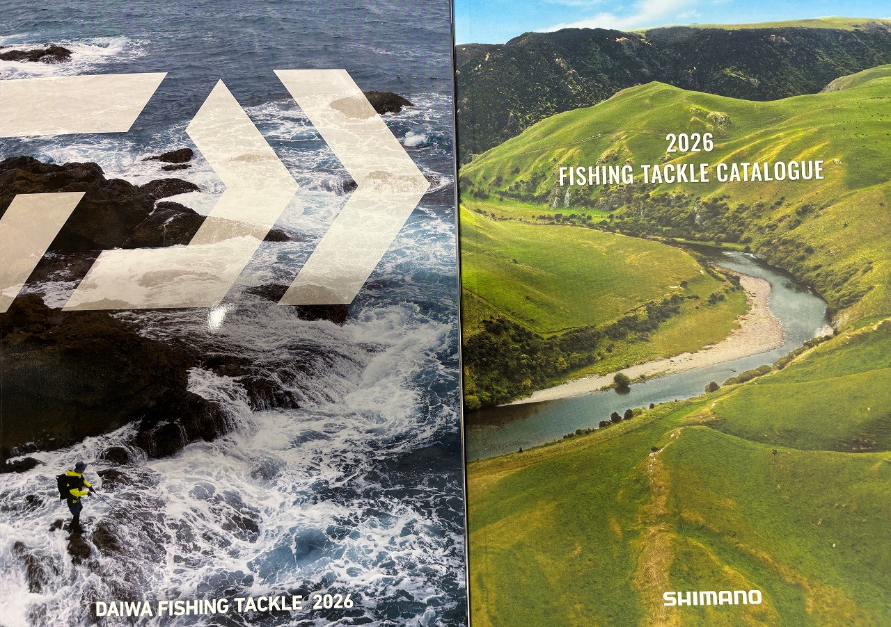 ダイワとシマノの総合カタログをご用意してます。