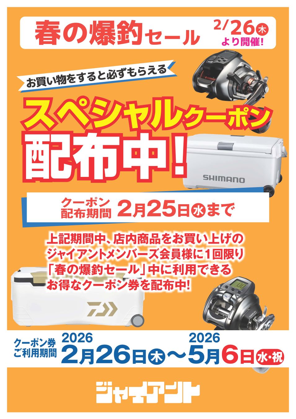 只今2月26日よりご利用になれます【春の爆釣スペシャルクーポン券】配布中です!
