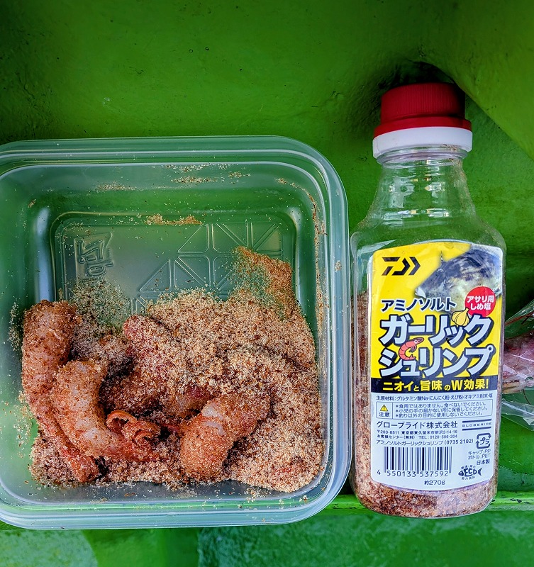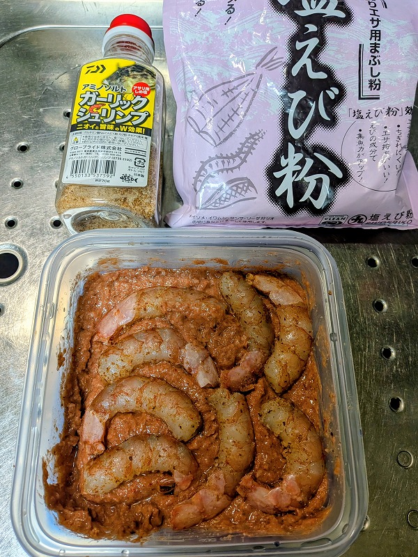 添加剤は激旨からダイワさんのアミノソルトガーリックシュリンプに変更。