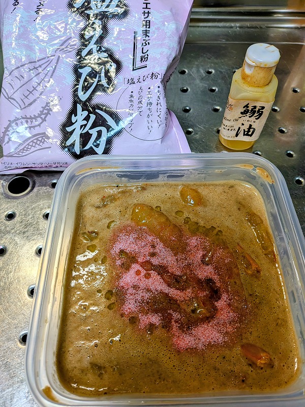 こうなると止まりませぬ。。。海老の薫り向上としてマルキューさんの塩えび粉大匙3