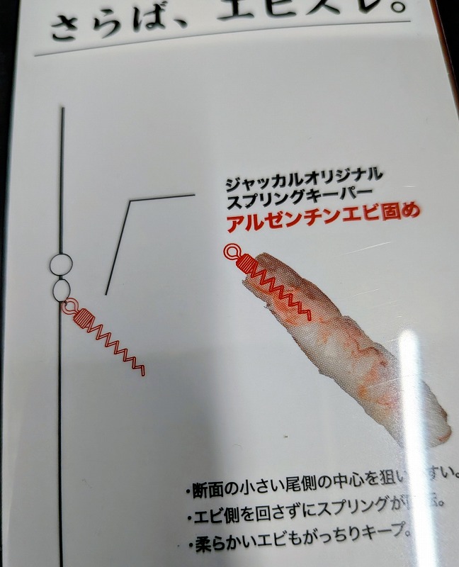 このスプリングをエビに埋め込んで完了。あとはカットウで掛ける!