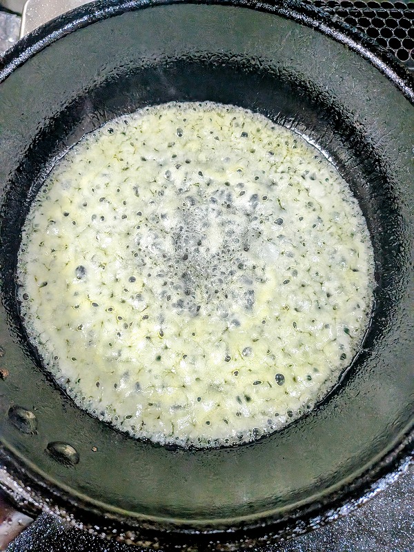 油とお水でパチパチしますが、そのうちパチパチが静まりましたらこうなります。