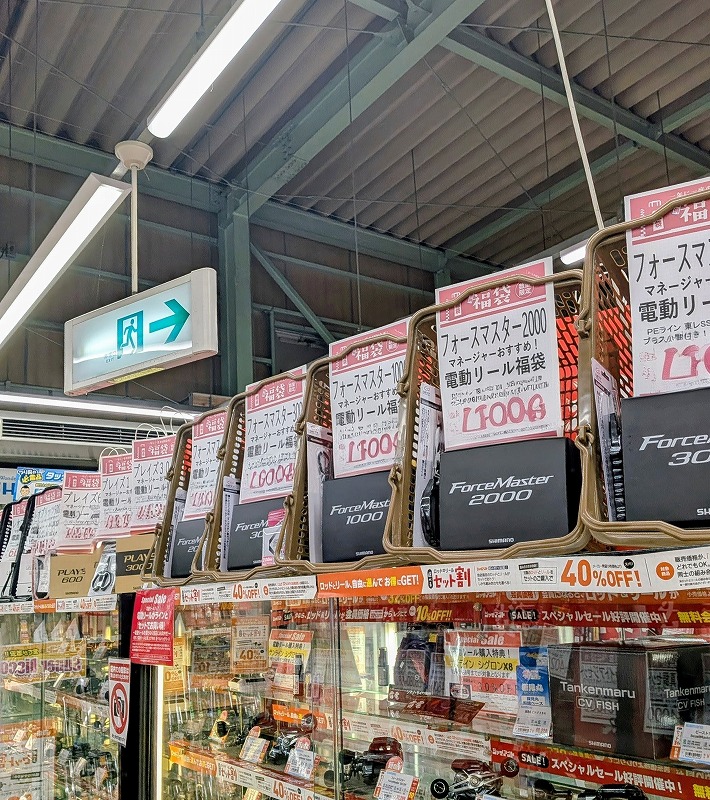 はい。向かい側のおむかいさんには電動リールの福袋であります。